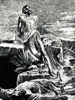 Статуэтка славянского Зевса Когда-то в древности на берегах Волхова существовал русский город — Старая Ладога. Сейчас в этом месте, находящемся неподалеку от впадения реки Волхов в Ладожское озеро, ведутся археологические раскопки. Там были найдены, например, лодки, возраст которых определяется примерно в 800 лет, керамические сосуды и бытовые вещи славян 600-летней давности. А последняя находка ленинградских ученых вообще уникальна. В остатках жилого дома обнаружено резное изображение Перуна — одного из главных божеств древних славян до принятия ими христианства. Из тиса вырезан худощавый старик с длинной бородой. На голове у него — высокая островерхая шапка, а опоясан он толстым волнистым ремнем с черточками. Ученые видят в этом символическое изображение тучи, изливающей потоки дождя.