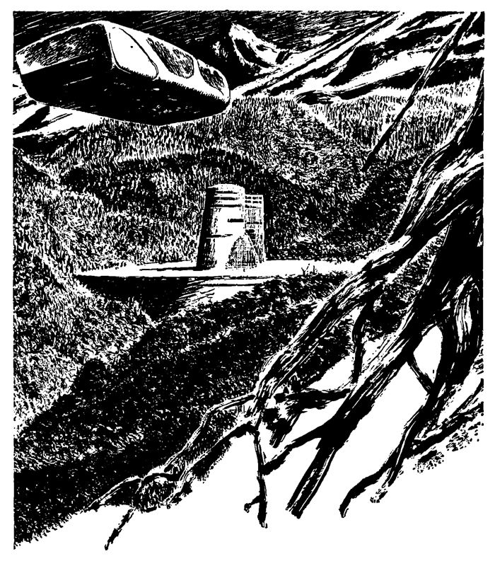Экран внешнего обзора, на протяжении последних трех тысяч часов остававшийся беспросветно серым, расцвел водоворотом красок, неописуемой радугой сжимающегося гиперпространственного поля. Не бывало еще, чтобы два человека видели его одинаково, и никакое воображение не могло помочь его представить. Траск обнаружил, что смотрит, затаив дыхание. Как и стоящий рядом капитан Харкаман. Очевидно, привыкнуть к этому было невозможно. Даже астрогатор Гуат Кирби глядел на экран, забыв про зажатую в зубах трубку. Потом экран мгновенно заполнила драгоценная пыль звезд на черном бархате нормального пространства. В самом центре горела желтым огнем звездочка поярче — звезда Эртадо, солнце Танит. До нее оставалось десять световых часов. — Очень неплохо, Гуат, — откомментировал Харкаман, подхватывая кофейную кружку. — Неплохо? Геенна, да это превосходно, — возмутился кто-то. Кирби раскурил погасшую трубку. — Ну, наверное, сойдет, — выдавил он через мундштук. Этого лохматого старика ничто на свете не могло удовлетворить полностью. — Можно было и поближе. Атак нам потребуется три микропрыжка, и последний — довольно рискованный. Так что не отвлекайте меня. — Он принялся подкручивать верньеры и указатели. На мгновение Траску показалось, что с экрана на него смотрит Андрей Дуннан. Он сморгнул галлюцинацию, потянулся за сигаретами, засунул одну не тем концом в рот, перевернул и щелкнул зажигалкой. Пальцы его дрожали. Отто Харкаман тоже это заметил. — Спокойно, Лукас, — прошептал он. — Сбавь оптимизм. Мы только надеемся, что он здесь. — А я уверен. Он должен быть здесь. Нет. Так мог бы сказать сам Дуннан. Останемся в здравом рассудке. — Мы не можем думать иначе. Если мы приготовимся, а его не окажется — это разочарование. Если он здесь, а мы не готовы — это катастрофа. Видимо, не он один так думал — пульт боевого управления сиял алыми огнями полной готовности. — Ладно, — пробормотал Кирби. — Прыгаем! Он повернул красный рычаг и резко дернул на себя. Снова экран вскипел красками, снова корабль вздрогнул под напором могучих и недобрых сил, подобных вызванных чародеем демонам. Потом экраны посерели, глянув в лишенное даже измерений ничто, опять плеснули радугой, и в самом центре, как и прежде, вспыхнула звезда Эртадо — диск размером с монетку, окруженный хороводом из семи ярких точек-планет. Танит была третьей, как это обычно для обитаемого мира в системе звезды класса G. Единственную луну — пятьсот миль в поперечнике, пятьдесят тысяч от поверхности — с трудом можно было разглядеть в телескоп. — Знаете, не так и плохо, — опасливо признался Кирби. — Может, в один микропрыжок вложимся. Когда-нибудь, решил Траск, он тоже сумеет помечать приставкой «микро» прыжок в пятьдесят пять миллионов миль. — Как ты считаешь, — спросил Харкаман вежливо, словно спрашивал совета у опытного товарища, а не экзаменовал ученика, — где Гуату лучше нас выбросить? — Как можно ближе, конечно. Это значит, самое малое в одной световой секунде; если «Немезида» попытается выйти из гиперпространства ближе двухсот тысяч миль от планеты такого размера, само поле отшвырнет ее назад. — Разумно будет считать, что Дуннан обогнал нас часов на девятьсот. За это время он мог установить на луне локаторную станцию и, возможно, ракеты. На «Авантюре», как и на «Немезиде», четыре пинаса; два я бы на его м