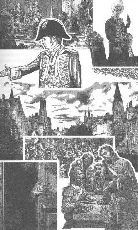 Джон Эксхем надеялся, что за столом он и граф Ульрих фон Гейерштайн окажутся соседями, но получилось иначе. То ли благодаря случайности, то ли из-за желания Макинтайра пошутить, как это он нередко проделывал с младшими офицерами, но Джон оказался рядом с майором Рофферти. Рофферти был приглашен к столу Железного герцога! Впрочем, немного подумав, Джон перестал удивляться. Да, герцог Веллингтон был человеком волевым и умным, но, одновременно, весьма чувствительным к лести. Он не обладал воинским талантом Блюхера или Бюлова, но всегда проявлял такую непреклонность, что сметал любые препятствия, возникавшие на его пути. Когда низкоугодники превозносили его железную волю, он позволял себе всего лишь легкую улыбку, но если сомневались, пусть даже весьма неопределенно, в его способностях стратега, он буквально выходил из себя. Таким образом, у льстецов имелось весьма обширное поле деятельности, и не было льстеца более ловкого и хитрого, чем Рофферти. О нем рассказывали множество историй, как в Англии, так и на континенте; он был исключен из многих лондонских клубов и многие двери навсегда закрылись перед ним. Но он пользовался расположением Веллингтона, и не только благодаря своей угодливости, но и потому, что принадлежал к семье, занимавшей положение в самых верхах общества. «Скорее благородный бездельник, чем лавочник», — такой была оценка Рофферти, данная Веллингтоном, ненавидевшим «лавочников», хотя именно они обеспечили величие империи. Впрочем, майор Альфред Рофферти оказался приятным собеседником, и Эксхема быстро очаровали его острый язык и увлекательная болтовня. Очень жаль, Эксхем, что вы не в курсе истории про троицу из шестьдесят девятого, — шепнул он на ухо Джону. — Вы могли бы вскользь упомянуть о ней Веллингтону — это наверняка понравилось бы железному герцогу. Что это за история с троицей из шестьдесят девятого? — поинтересовался Джон. Дело вот в чем: Веллингтон испытывает уважение всего лишь к трем генералам: Наполеону, Сульту и самому себе. И знаете, почему? Так вот, только потому, что все трое родились в 1769 году, который он называет волшебным годом! Неплохо придумано, чтобы подчеркнуть свою значимость, не так ли? Пропустите очередное блюдо, — прошептал он через несколько минут. — Это всего лишь разогретые остатки рагу из дичи, подававшегося позавчера! Эксхем должен был последовать совету своего соседа, потому что мясо имело несколько странный запах, и он заметил отвращение на лицах тех, кто вовремя не сориентировался и положил себе на тарелку подпорченное мясо, а теперь был вынужден с большим трудом глотать его. Меню действительно было не слишком удачным; можно было подумать, что шеф-поваром у герцога служил не слишком опытный кулинар: на стол подавали отварную рыбу, жаркое из жесткой говядины, разварившуюся телятину и тощую дичь. Что касается вина, Рофферти выразился очень кратко: кислая отрава. Серебристый звон колокольчика оповестил о конце ужина и о том, что в соседнем помещении подали кофе. — Не стану задерживаться, — сказал Рофферти. — Я не очень люблю помои и жидкий чай. До встречи! В соседней комнате Джон увидел новые лица; он догадался, что часть гостей была приглашена только на кофе, но не имела права присутствовать на ужине. Макинтайр ждал его возле небольшого десертного столика в компании стройного молод