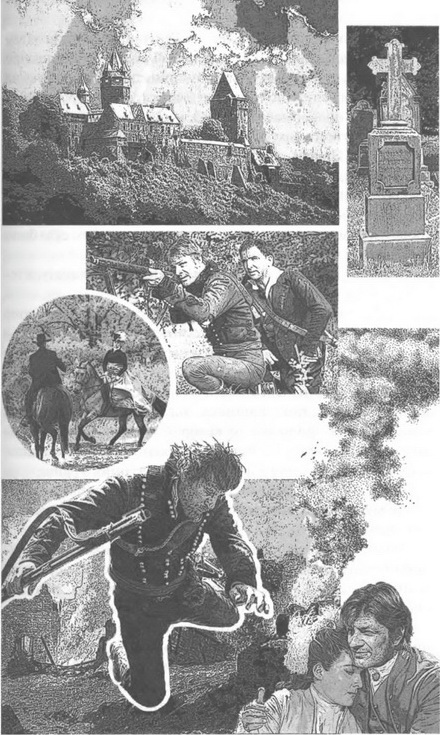 Дорога в Гейерштайн выглядела весьма уныло. Она пересекала бесконечные пустоши, покрытые высокой бурно разраставшейся сорной травой. Каменистые холмы закрывали горизонт, в низинах лежали небольшие пруды, от которых несло сильным запахом гниения. Бросались в глаза яркие цветы разных ядовитых растений, таких как наперстянка и аконит, пробивавшихся сквозь крошку мелкой сланцевой плитки, усеивавшей почву. Джон не встречал никакого зверья, если не считать пугливых кроликов и шнырявших под ногами лошади ласок или горностаев. Гораздо чаще ему встречались пернатые, в основном вороны, большими стаями с карканьем кружившиеся в небе. Высоко под облаками он заметил сарыча, высматривавшего добычу, а с болота иногда доносился крик выпи. Джон придержал коня, так как рассчитывал появиться в замке после обеда. Когда солнце достигло зенита, он остановился возле небольшого ручья, где смог напоить коня, предоставив затем ему возможность пощипать густую траву. Сам он с аппетитом расправился с бутербродами, приготовленными ему в дорогу Лебеволем. Примерно в два часа он проехал узкой долиной, змеившейся между холмов, и перед ним открылся вид на замок Гейерштайн. При этом он испытал легкий шок, так как не представлял, что замок может выглядеть таким суровым, мрачным и угрожающим. Довольно высокие окрестные холмы не позволяли увидеть замок издалека, хотя он и располагался на возвышенности с обрывистыми склонами. Эксхем вспомнил когда-то увиденный им неприступный замок в Эдинбурге, возвышающийся над отрогами гор Пент- ланда и надменно посматривающий на расположенный под ним город. Точно такими же мрачными были стены, башни и парапеты замка Гейерштайн, нависавшие над пропастью, и столь же скудной была растительность у его подножья. Узкая струйка дыма, поднимавшегося над высокой трубой, свидетельствовала, что замок не полностью покинут обитателями. Эксхем двинулся вверх по склону по узенькой тропинке, но вскоре оказался перед узкой боковой калиткой и понял, что выбрал не самую главную дорогу. Калитка оказалась открытой, охраны перед ней не оказалось, и Эксхем въехал внутрь, очутившись в небольшом дворике, окруженном высокими стенами с бойницами. Все вокруг него говорило об одиночестве и забвении; выщербленные плиты покрылись мхом. С высокой стены на него громко и неодобрительно закричала пустельга. Он увидел слабый свет, горевший в темноте под низким сводом ниши в основании одной из стен, и невольно подумал, что эта мрачная дыра больше всего напоминает разверстую пасть дракона. Сойдя с коня, Джон пошел на огонек и очутился в помещении, напоминающем склеп. На выступе над тремя надгробными плитами горел масляный фонарь, в свете которого он прочитал выбитые на плитах имена. Они не сопровождались ни титулами, ни датами, а всего лишь скупо сообщали: Граф Карл-Людвиг-Арнольд фон Гейерштайн Граф Ульрих-Рандольф фон Гейерштайн Иоганн-Петер Пробст Взволнованный Эксхем громко выразил признательность по-прежнему неизвестной ему графине Эрне. Отважный и верный Пробст покоился рядом со своим обожаемым юным хозяином в графском склепе! Он снял шляпу и преклонил колени. Ульрих, я пришел, — негромко сказал он. Спасибо, капитан Эксхем! — послышался голос рядом сним. Испуганный Джон одним прыжком вскочил на ноги — так потрясли его слова, сказанные, как ему показ