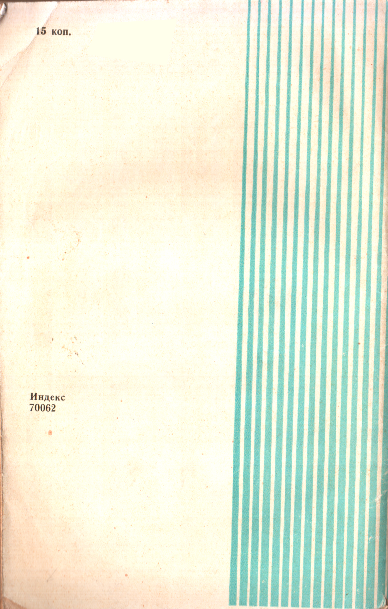 А 09114. Сдано в набор 10/V 1971 г. Подписано к печати 28/VI 1971 г. Формат бумаги 60Х90/16. Бумага типографская № 3. Бум. л. 2,5. Печ. л. 5,0. Уч.-изд. л. 4,76. Тираж 128 000 экз. Издательство «Знание». Москва, Центр, Новая пл., д. 3/4. Заказ 1144. Типография Всесоюзного общества «Знание». Москва, Центр, Новая пл., д. 3/4. Цена 15 коп. УВАЖАЕМЫЕ ТОВАРИЩИ! Вышел из печати международный ежегодник «Наука и человечество. 1970». В этом томе международного ежегодника, выпускаемого Академией наук СССР совместно с Всесоюзным обществом «Знание», выступают крупнейшие ученые многих стран, которые знакомят читателей с последними достижениями мировой науки и техники. Авторы книги — ученые Англии, Венгрии, ГДР, Италии, СССР, США, Цейлона. КНИГА БОГАТО ИЛЛЮСТРИРОВАНА. ЦЕНА ТОМА — 2 РУБ. 80 КОП. ЗАКАЗЫ НА ЕЖЕГОДНИК «НАУКА И ЧЕЛОВЕЧЕСТВО. 1970» ПРОСИМ НАПРАВЛЯТЬ ПО АДРЕСУ: МОСКВА, В-463, МИЧУРИНСКИЙ ПР., 12. МАГАЗИН № 3 «КНИГА — ПОЧТОЙ» ЦЕНТРАЛЬНОЙ КОНТОРЫ «АКАДЕМКНИГА». Издательство «Знание»