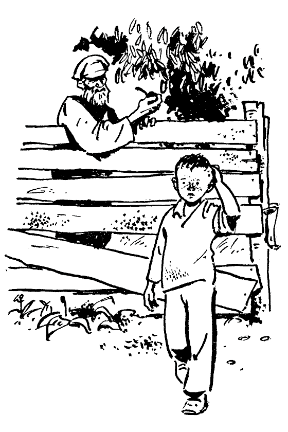 Однажды мальчик Ивашка Кудряшкин полез в колхозный сад, чтобы набрать там яблок и тайно насытиться ими до отвала. Но, зацепив штаниной за гвоздь ограды, он свалился в колючий крыжовник, оцарапался, взвыл и тут же был сторожем схвачен. Конечно, старик мог бы стегануть Ивашку крапивой или, что еще хуже, отвести его в школу и рассказать там, как было дело. Но старик сжалился над Ивашкой. Руки у Ивашки были в ссадинах, позади, как овечий хвост, висел клок от штанины, а по красным щекам текли слезы. Молча вывел старик через калитку и отпустил перепуганного Ивашку восвояси, так и не дав ему ни одного тычка и даже не сказав вдогонку ни одного слова.III