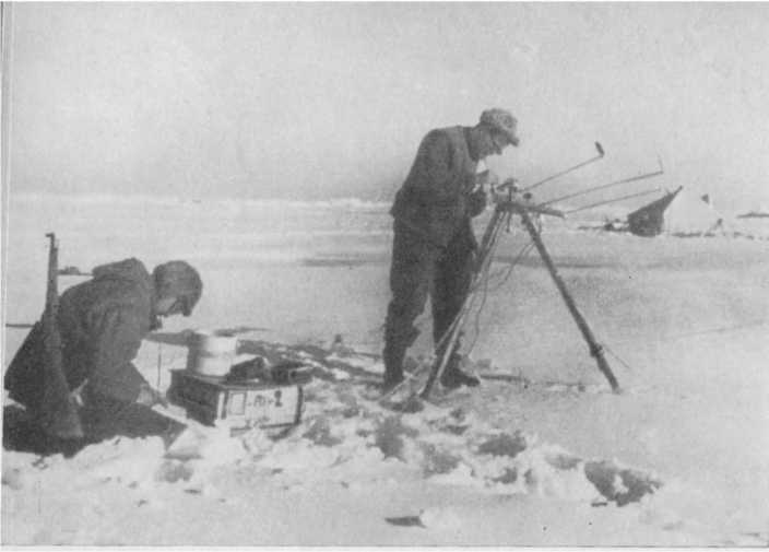Американский геофизик Р. Гаррис, изучая приливы в Северном Ледовитом океане, в 1911 году выдвинул гипотезу, по которой направление приливной волны, распространяющейся из Атлантического океана на север, искажалось каким-то препятствием в Арктическом бассейне. Хотя Гаррис и указывал, что это может быть не обязательно суша, а лишь обширная отмель, все же впоследствии эту землю рисовали на картах под названием «Земли Гарриса». В 1926 году над Арктическим бассейном пролетел дирижабль «Норвегия». Этот перелет известен под названием воздушной экспедиции Амундсена — Элсуэрта — Нобиле. Поднявшись со Шпицбергена 11 мая 1926 года, дирижабль взял курс прямо к Северному географическому полюсу, сделал круг над полюсом и продолжал полет к Аляске, над местами, которых еще не видел человеческий глаз. От полюса до 86° северной широты воздухоплаватели наблюдали лишь торосистый лед, прорезанный трещинами и полыньями. Никаких признаков земли не было. Дальше дирижабль летел в тумане, но 13 мая в просветах появилась земля — это была Аляска. В 1928 году Г. Уилкинс и Б. Эйелсон совершили на самолете полет из Аляски в Гренландию. Одной из задач этого полета были поиски «Земли Гарриса». Но земли не оказалось. Взору пилотов предстало бесконечное пространство дрейфующих льдов. Вопрос о «Земле Гарриса» был закрыт. Папанинцы в 1937–1938 годах и ледокол «Г. Седов» в 1938–1939 годах дрейфовали в западной части Арктического бассейна, и глубины здесь всюду оказались более 3000 метров. После этого создалось впечатление, что весь Арктический бассейн представляет собой глубоководную океаническую чашу. Его так и стали изображать на географических картах. Даже сомнительная глубина, измеренная Уилкинсом в 1927 году, казалось, подтверждала эту гипотезу. Но после второй мировой войны советские полярные исследователи снова обратили внимание на Центральную Арктику. Самолеты ледовой разведки начали летать в более высокие широты, и стало очевидным, что никаких неизвестных земель здесь нет. Но что находится под ледяным покровом? Какие там глубины? Все чаще и чаще мы в Арктическом институте задавали себе эти вопросы. Ведь на огромной области Арктического бассейна в секторе между 150-м восточным и 70-м за-ладным меридианами с вершиной в Северном полюсе было измерено лишь три глубины. На заседаниях Ученого совета с 1946 года зазвучали настойчивые голоса об экспедиции в Центральную Арктику. Энтузиастами этих предложений были метеорологи В. В. Фролов и Е. И. Толстиков, магнитолог М. Е. Острекин, океанологи и ледо-исследователи М. М. Сомов, П. А. Гордиенко, Я. Я. Гаккель, В. X. Буйницкий, Н. А. Волков, М. М. Никитин, Л. Л. Балакшин, И. С. Песчанский, В. С. Антонов и многие другие. При этом вопрос шел не только об изучении рельефа дна, а предлагалось развернуть исследования по комплексу природных явлений в Центральной Арктике, включая проблемы гидрометеорологии и особенно геомагнетизма. Магнитный полюс в Северном полушарии, где подвешенная свободно магнитная стрелка становится вертикально, был открыт в Канадском Арктическом архипелаге, недалеко от берега Северной Америки, и местоположение его определил в 1831 году Джемс Росс. Он иногда так и называется «магнитный полюс Росса». Наблюдения за магнитным полем Земли, проводившиеся регулярно во время дрейфов папанинской станции и ледокола «Г. Седов», указывали на 