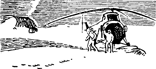 Как всегда, после того как опасность миновала, в кают-компании царило оживление. Больше всего обсуждался во всех вариантах случай с гусем. Оказывается, на крыше камбуза стояло несколько ящиков с расходными продуктами, в том числе раскрытый ящик с морожеными гусями. Порывом ветра ящики разметало, гуси «полетели», и один из них за 300 метров от камбуза вместе с Сухаревым попал в тамбур дома водителей. Недисциплинированные товарищи, пытавшиеся вопреки объявлению выйти на улицу, отделались легкими ушибами, но не избежали серьезного предупреждения. 1 сентября был первый календарный весенний день. С утра тихо, видимость отличная во всех направлениях, но солнце за облаками. Во второй половине дня пошел снег, а потом задуло. АН-2 успел слетать в Оазис; доставил туда врача Гаврилова — лечить зубы у сотрудников станции — и механика-водителя Кулешова — произвести профилактический ремонт всех двигателей. Шакиров с бригадой на тягаче отправился на ледяной склад за мясом. …Третий весенний день, а метет поземка. По мере того как солнце поднималось над горизонтом, вздохи ветра становились короче и короче, а к полудню стало тихо. Видимость отличная, голубеют ледники, блестят, точно зеркало, обнаженные, отполированные ветром грани айсбергов, на горизонте вследствие рефракции они принимают причудливые, фантастические формы. Начиная с 28 августа магнитные станции фиксируют сильную магнитную бурю, из-за этого радиосвязь с Пионерской и Востоком-1 нерегулярная. …Столько было надежд на улучшение погоды в сентябре! Но и сентябрь нас не радует — почти все время дует ветер, часто идет мелкий снег. 17 сентября во время сильной пурги, когда мы сидели в доме и спокойно обсуждали планы предстоящих работ, прибежали водитель вездехода В. А. Быков и радиотехник А. Л. Желевич. — Вот все, что осталось от вездехода! — плачущим голосом сообщил Быков. — Где же он? — с тревогой спросил я. — Ехали в пургу на передающую, сбились с пути и полетели с барьера в трещину. — Ктобыл с вами? — Мы вдвоем. Вылезли из машины, потом из трещины и прибежали сюда. — Хорошо хоть живыми остались, — успокоил я их. Мы пошли в пургу, еле различая след вездехода. Прямо от дома метеорологов он вел не к передающей, а к обрыву. Быков сквозь пургу увидел в море остров Строителей и принял его за скалу Радио. Он ехал в этом направлении, пока машина, а вместе с ней и люди не полетели с барьера. К счастью, вездеход свалился в том месте барьера, где был высокий снежный сугроб, попал в него и затем плавно съехал в расщелину, образовавшуюся между барьером и сугробом. Вот почему Быков и Желевич отделались лишь испугом. Но стоило тягачу пройти метров 20 левее, и он бы полетел с тридцатиметрового ледяного обрыва на жесткий морской лед. 22 сентября я отправился в Оазис, где еще ни разу не был. Нужно ознакомиться со станцией. Сразу изменился ландшафт. Будто бы попали в другое место земного шара. Черные и коричневые сопки, совершенно свободные от снега, раскинулись на сотни квадратных километров. Пахнет землей и весной. Тихо. Лед на озере в мелких волосных трещинах и весь пронизан круглыми пузырьками воздуха. Эти пузырьки, точно белые бусинки на тонких ниточках, висят в светло-синей толще прозрачного льда. Поверхность его неровная, в виде чешуек или волноприбойных знаков, отполированных ветрами. Очень скользко. Прозрачност