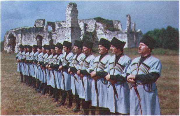 Мирный 20-летний период строительства социализма в стране и успешный процесс преодоления вековой отсталости на ее окраинах были прерваны летом 1941 года нападением фашистской Германии. Все государство было мобилизовано для отпора врагу. На фронтах Великой Отечественной войны сражались представители всех народов и национальных групп, населяющих СССР, и среди них — абхазы. Погибло 20 миллионов советских людей. 10 тысяч абхазов — около одной шестой всего населения автономной республики — не вернулись с фронта домой. Все рассказы о войне, которые я слышала в Абхазии, были очень похожи один на другой. Каждая семья потеряла кого-нибудь на фронте или в тылу врага. И никто мысли не допускает о том, что снова придется испытать подобные тяготы и отказаться от новой жизни, начавшейся в этой республике в 1921 году. Абхазия не была оккупирована немецко-фашистскими войсками, которые многие месяцы пытались захватить Кавказ. Советские войска геройски сражались на подступах к Кавказскому хребту, чтобы не пустить фашистов в этот стратегически важный район страны — Закавказье, куда еще в XIX веке стремились проникнуть Турция и Англия. Особенно привлекал гитлеровцев богатый нефтью район Баку, захват которого дал бы столь необходимое для гитлеровской армии топливо. Пока мужчины помоложе воевали на фронте, а старики служили в горах проводниками и разведчиками регулярных частей Советской Армии, абхазские женщины и дети оставались дома, взяв в свои руки практически все народное хозяйство республики. Многие тысячи беженцев из временно оккупированных районов Белоруссии, Украины и юга России прибыли в Абхазию, где местные жители помогли им жильем, пищей, одеждой. Работа в поле была тяжелой, продуктов питания не хватало, но абхазы делились всем, что имели. По старинным законам гостеприимства, подкрепленным узами крепнущей дружбы между народами Советского Союза, гостям в Абхазии отдавалось все самое лучшее. Гудж Чхинджерия, 78-летний житель села Джгерда, рассказывал мне, что никогда не ходил в школу, но читать и писать научился в тридцатые годы на курсах ликбеза. Он вспоминал о том, что только-только жизнь начала улучшаться, когда ему в 38 лет пришлось оставить жену и детей и идти воевать. В 1942 году на Украине в боях на реке Донец он был тяжело ранен и по состоянию здоровья демобилизован из армии. Ивану Зухбе было уже 85 лет, когда я встретилась с ним в Джгерде в 1982 году. Он воевал добровольцем в одном из разведотрядов, активно действовавших во время битвы за Кавказ. Отряд был сформирован из тех, кто по возрасту уже не подходил для службы в действующей армии. Максимальный возраст этих добровольцев был 70 лет, минимальный — 40. Все они были местными жителями, хорошо знали горы и потому стали незаменимыми помощниками регулярной армии. Иван Зухба рассказал мне, как он удочерил девочку из числа беженцев. В его родной деревне было много женщин и детей, эвакуировавшихся в Абхазию. Однажды в их дом зашла молодая русская женщина, осталась жить, а через несколько дней спросила, не могли бы они некоторое время присмотреть за ее шестилетней дочерью. Единственное, что знала о ней семья Ивана Зухбы, — она прибыла из Краснодара. После этого Иван никогда больше не встречал ее и по сей день не знает, что с ней случилось. Вместе с женой они воспитывали девочку, как родную. Она законч