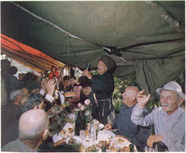 Наша беседа продолжалась: — Бабушка, бывало, — подчеркнула Зинаб, — говорила моей матери: «Заставляй детей слушаться, когда они еще не доросли до твоих колен. Позже делать это бесполезно». Я уже забыла, как наша мать добивалась от детей послушания. Не помню, чтобы меня наказывали физически, хотя, возможно, мне и доставалось — я видела, как мои братья и сестры получали шлепки пониже спины, когда были еще слишком малы, чтобы реагировать на словесные замечания. Мать была строгой, но одновременно и ласковой. Когда мы хорошо вели себя, она всегда нас хвалила. Если мы переступали какую-то грань, она останавливала нас, но не ругала. Нам так нравились ее похвалы, что само их отсутствие было достаточно сильным наказанием. В те годы для меня весь мир был ограничен нашим домом и семьей. Мать почти всегда была с нами — женщины тогда редко отлучались из дома. Отца мы видели реже, и получить от него похвалу нам хотелось, пожалуй, даже больше, чем от матери. Он никогда не бил нас, и мы его не боялись, но всегда ждали его ласки. В присутствии своих родителей любой отец-абхаз должен был вести себя так, словно он совсем не замечает своих детей. Только когда он был наедине с нами в нашей комнате, мы могли надеяться, что он нас обнимет. Это были драгоценные мгновения, и я до сих пор ясно помню их так, словно это было вчера. Ни один абхазский мужчина не был достоин уважения, если он демонстрировал свою привязанность к детям в присутствии своих родителей или других, старших по возрасту людей. Мы инстинктивно сознавали, что нам не следует подходить к отцу, если поблизости были наши бабушка и дедушка. С матерью мы чувствовали себя свободнее, но, когда рядом был дедушка, мы не подходили к ней по той же причине, по какой не приближались к отцу в присутствии других людей. В абхазском фольклоре есть много сказаний об отцах, которые видят, что их маленький ребенок в опасности, но, подчиняясь правилу «избегания», в присутствии старших не обращают на это внимания и ничего не предпринимают, чтобы спасти малыша. Единственный выход из положения в таких случаях, чтобы кто-то другой из находящихся поблизости заметил угрожающую ребенку опасность и пришел к нему на помощь. Другое строгое абхазское правило — вставать, когда кто-нибудь входит в комнату или во двор, и не садиться до тех пор, пока гость или член семьи, особенно если это старший по возрасту, не сядет. Если старший вставал, то младший никогда не садился на его место. Этот стул всегда предназначался для старшего, даже если было ясно, что тот не скоро вернется в комнату. Между прочим, наша молодежь до сих пор придерживается этих правил, а также других обычаев застольного ритуала. К примеру, взрослые ели отдельно от детей, и, когда принимали гостей, старшие дети обслуживали их за столом, не разговаривая и не мешая взрослым. Это не было унизительным занятием, а, напротив, почетным как для гостей и детей, так и для хозяйки. Гостям льстило проявляемое к ним уважение, а тем, кто их обслуживал, было приятно, что гости ценят их уважительное поведение, соответстующее обычаям. Эти же принципы сохраняются и сегодня. Я продолжала внимательно слушать собеседницу, мысленно анализируя абхазские обычаи, в которых много поучительного. Не случайно в Абхазии многие из них соблюдаются и в наши дни. — Это были наши первые уроки уважения к старшим, — ко