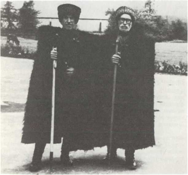 Старики из Члоу в национальной одежде с жезлом, символизирующим их старшинство.
