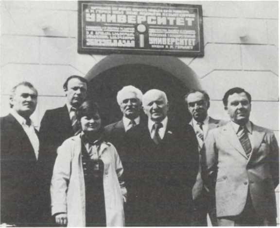 У входа в Абхазский университет. Справа от автора ректор университета 3. В. Анчабадзе.
