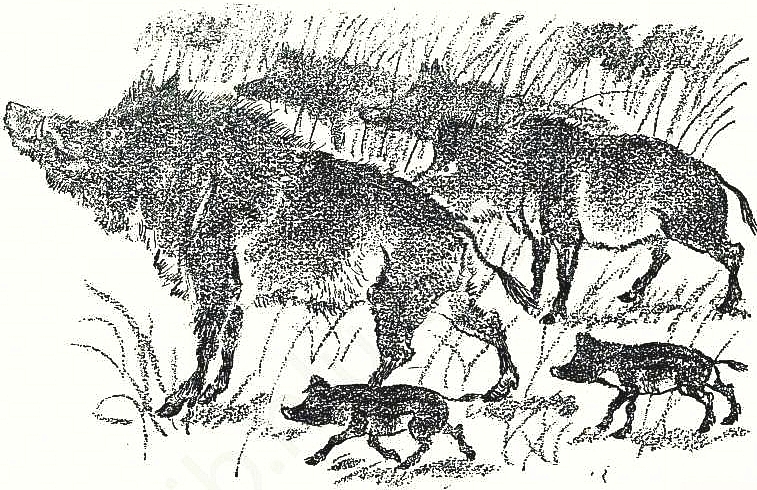 Тоді кнур упав на бік і став качатися на надбережному камінні, куди він скотився з кущуватого схилу. Барс випустив шию і перше ніж він, зім'ятий об гостре каміння, встиг відскочити, кнур розпанахав йому черево так, що червоний мотлох поповз з барса на камінь. Але на цім не скінчилася борня, оскаженілий від болю барс, як кішка, бив його пазурями, роздер надвоє вухо, вирвав шматок губи, аж поки, ввесь заюшений своєю й ворожою кров'ю, кнур не розтоптав його ногами. З того часу Хро перестав ходити своїми стежками, а держався гурту і вкупі з усим табуном щороку мандрував зимувати в теплу долину і наїдатись кукурудзи в тюркських городах. Така була вікодавня традиція, а молодий кнур тепер і не брався відступати від племінних звичаїв. Так він дожив старого віку, сотні наплодив пасмужистих дітей – дикі поросята завжди спочатку смугасті, а далі пасмуги пропадають у бурій шкірі спини й боків – і думав уже, що так і помре в законах і звичаях своїх предків. Так було аж до зустрічі його з партизаном Гамідом. Гамід, повернувшись з громадянської війни, нові запровадив у своїм селищі звичаї. Він не додержував постів, не молився Аллахові, їв свиняче м'ясо, обстоював, що гуртом краще робити, ніж нарізно, і не шанував муллу. Коли вепри приходили з гір у долину і паслися вночі на тюркських городах, Гамід ганяв їх із собаками, убивав з засідок і залюбки їв м'ясо, немов якийсь невірний урус[2]. Одного разу він поранив у ногу вепра, але не управився знов закласти патрони і вепер утік. Це був Хро, і Гамідова куля вбила в його ногу і в думання тяжкі сумніви. Кукурудза на городах коло перелісків була солодка і від неї жиріли вепри, але в перелісках легко було гасати собакам, а Гамідова рушниця не сподобалася старому кнурові. З перелісків коло селища Девічі він завів вірних собі свиней у Лиман, через лінію залізниці. Двадцять кілометрів очерету в неглибокій воді – це прекрасне було сховище. Настирливі собаки, що залюбки дратували й непокоїли вепрів у гаях, неохоче лізли у воду, різали собі носи об очерет, вибивалися з сил, і довелося дати спокій тим вепрам, що в Лимані. Та тепер всежтаки Хро не міг спати, а тільки кліпав очима і думав. Він досяг висот слави і могутності. Він був – вожай! Тепер він думав не про це. Щось починало підточувати його здоров'я. Нога, де погостювала Гамідова куля, часом боліла йому від холодної води – то був ревматизм. Він знав, що в зибучому лепові у круглих ополонках по той бік Лимана був порятунок від болю – варт тільки полежати там бодай ночей зо три. Але над берегом Лимана походжали якісь люди з рушницями, що їх привозив поїзд. Цей поїзд щовечера кричав десь за Лиманом, гуркотів, і по тому чути було далекі, слабкі, але смертедайні звуки – постріли. – Сюди вони не дійдуть, – знав Хро, але не міг не мріяти про жовтий леп*, що виймав біль з костей. Він застогнав і перевалився в ковбані на другий бік, тепер поранена нога була зверху, і Хро заплющив очі. На мить йому привиділися гори його юнацьких літ, холодна, солодка вода гірської річки і в присмерку щось кричало довго-довго, як жалюгідний житель низів – шакал. Хро схопився на ноги. Це кричав паровоз далеко за Лиманом. Незабаром лунатимуть смертельні звуки з рушниць. Хро подався до свиней і торкнув ту, що лежала найближче, гострим, як ніж, іклом. Свиня аж підстрибнула. В одну мить усі були на ногах, непевно хрокали 