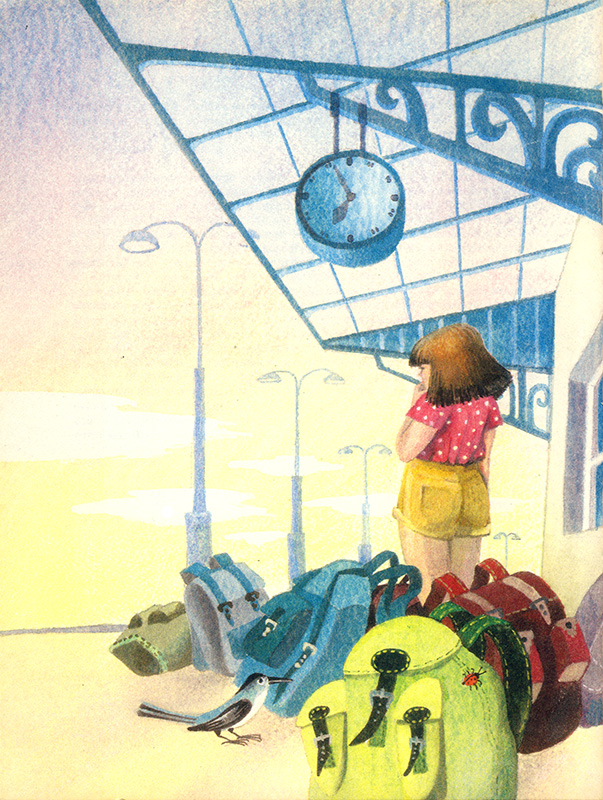 И вот они все вместе едут в город. Мама украдкой припудривает щеки, скрывает следы слез.