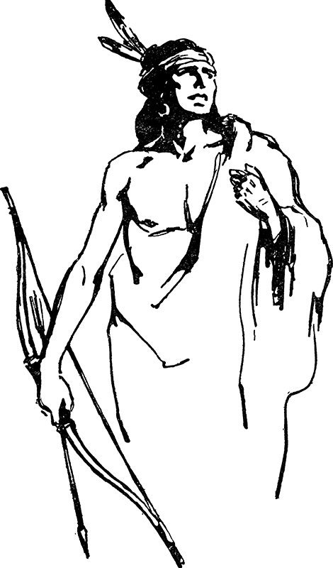 авно это было, очень давно, в дни моей юности. Однажды на закате солнца, в месяц Новой Травы, увидели мы Одинокого Человека, проходившего мимо вигвамов. За спиной он нес большого орла. Был он рослым и строчным — этот Одинокий Человек. Когда он шел, трепетали за его спиной широко распростертые крылья орла, топорщился над его головой широкий орлиный хвост из красивых перьев, белых с черными кончиками, а голова птицы спускалась к его коленям.