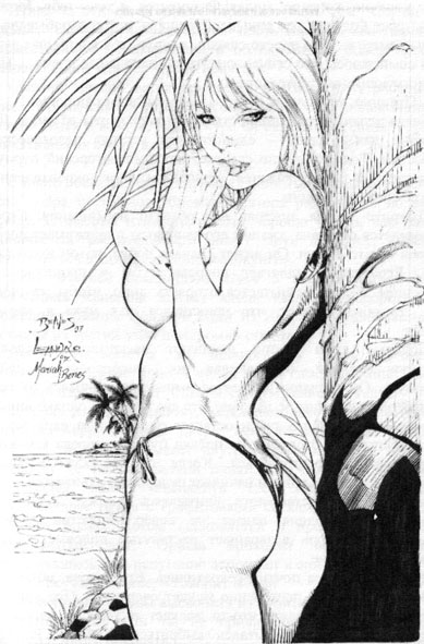 Керри не помогает ему, но и не сопротивляется. Голубое фестончатое кружево её бюстгальтера на фоне белой кожи напоминает линию прибоя на белом песчаном пляже, ловкие мужские пальцы — любопытных крабов, снующих по песку. Пальцы находят переднюю застёжку, и чашечки соскальзывают с едва различимым шорохом, открывая две изящные возвышенности. Губы, обрамлённые щёточкой усов, нежно сжимают набухший сосок, пальцы одновременно ласкают его двойника. Одной рукой Керри приподнимает левую грудь, помогая ей получить свою долю наслаждения. Правой поднимает бокал, ищет на ощупь, куда его поставить, не находит и разжимает пальцы. Звяканье кусочков льда, плеск жидкости, жадно впитываемой ковром. Теперь рука свободна, Керри обнимает Джариуса за шею и притягивает к себе. Тот продолжает, не торопясь, заниматься сосками. Через несколько минут она раздвигает колени. Он гладит её бёдра, обтянутые шелковистым нейлоном, поднимая руку всё выше. Дойдя до полоски обнажённой кожи, рука замирает. Керри немного сдвигается, задирая юбку, теперь уже намеренно, а не случайно, как в машине. Джариус сжимает в ладони её интимный бугорок, и она мурлычет от удовольствия.