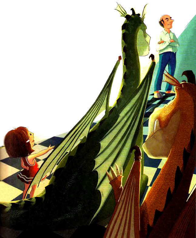 — Получилось! — обрадовался Георг. — Получилось! Этот крик услыхал из своей будки господин Кратохвил. Он вышел на улицу и увидел в воздухе драконов. — Это запрещено! — взвизгнул он. — Так нечестно!