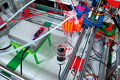 Установка на основе трехмерного принтера, с помощью которой профессор Кронин и его коллеги ведут свои исследования.