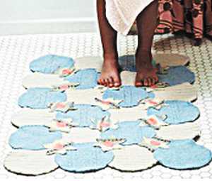 Вместо резинок для консервирования можно также использовать кусочки компьютерного коврика для мыши или резиновые наклейки. Кстати, такие наклейки даже не придется пришивать, если они прочно прилипнут к изнанке ковра. Еще, чтобы ковер не скользил по полу, его можно закрепить с помощью застежек на липучках или двустороннего скотча. Учтите только, что липучки и скотч могут повредить поверхность напольного покрытия. Поэтому их лучше использовать только в том случае, если ковер всегда будет лежать на одном и том же месте.