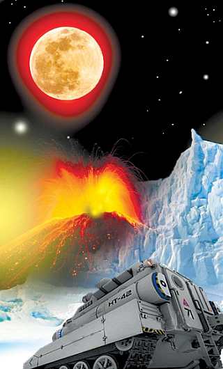 Владимир МарышевВетер крепчал. Поначалу он просто дул навстречу вездеходу, словно задавшись целью не пустить его на базу, а теперь бил со всей силы, швыряя тонны метанового снега в лобовое стекло и обдавая его градом аммиачных ледышек, заставляя машину вздрагивать. Рассеять пелену не мог даже свет мощных фар. Оставалось полагаться на приборы. Погруженная в вечную зиму Грайя шутить не любила и сурово наказывала за любую оплошность. Но что ей стоило поумерить свой крутой нрав хотя бы до завтра?.. Корабль с Земли прибыл точно по графику. Привез еду, оборудование, а самое главное — новые энергетические батареи. К космопорту за грузом обычно высылали гравилеты, но поднимать их в такую погоду было безумием. Наземной техникой среднего класса тоже рисковать не стали, так что отправили единственный тяжелый вездеход… Глеб медленно вел машину по трассе-ниточке, вьющейся среди кособоких скал. Кое-где сквозь метановую пургу проглядывали местные растения, похожие на сростки полупрозрачных кристаллов. Биологи изучали их, но пока без особого успеха. Было известно, например, что даже при слабом ударе они рассыпаются на множество блестящих осколков. Большей частью те оставались мертвыми камушками, но некоторые укоренялись и давали начало новым сросткам. Да, у Грайи были свои красоты. Однако оценить их в полной мере мешало сознание того, что выжить здесь можно было лишь внутри металлических скорлупок. Температура снаружи редко превышала минус двести по Цельсию. Зазеваешься, сделаешь глупость — и тотчас превратишься в ледышку. Поэтому даже в герметичной кабине водитель никогда не расставался со скафандром. Этого требовали инструкция и здравый смысл. Береженого, как известно, бог бережет… Впереди показалась скала с удивительно ровными гранями, похожая на накренившуюся пирамиду. Она была главным местным ориентиром, подсказывающим водителю, что за спиной осталась половина маршрута. Увидев скалу, все невольно улыбались, хотя каждый мог узнать пройденный путь с точностью до метра, просто бросив взгляд на экран. Глеб тоже улыбнулся. А потом, без всякого перехода, в висках знакомо запульсировало, перед глазами поплыли радужные круги. И началось невероятное. Ни с того ни с сего прямо по курсу вспыхнул огромный костер. На этой насквозь промерзшей планете он был чужеродным, попросту немыслимым. И тем не менее пламя поднималось все выше, подкрашивая алым низкие фиолетовые тучи. Затем в промежутках между скалами показались раскаленные языки лавы. Покрываясь на ходу уродливой серой коркой, они медленно и страшно ползли к дороге. Ни дать ни взять — увидевшие добычу исполинские змеи! Корка то и дело лопалась, и из разломов выплескивалась огненная масса. Жар ощущался даже сквозь термозащиту скафандра и все нарастал, становясь нестерпимым. Глеб сознавал, что чудовищная картина — всего лишь иллюзия. Но эта иллюзия из тех, которые напрочь заглушают голос рассудка. Глеб резко затормозил, вывалился наружу и, чтобы не упасть, вжался спиной в огромное колесо вездехода. По шлему дробно стучали ледышки. Огонь поутих, а вместе с ним схлынул жар. Но это была временная передышка, худшее впереди. Отголосок чужой жизни всегда давал о себе знать дольше… Глеб поднял голову. Словно дожидаясь этого, в разрыве туч показалась Энио — единственная луна Грайи. Она была заметн