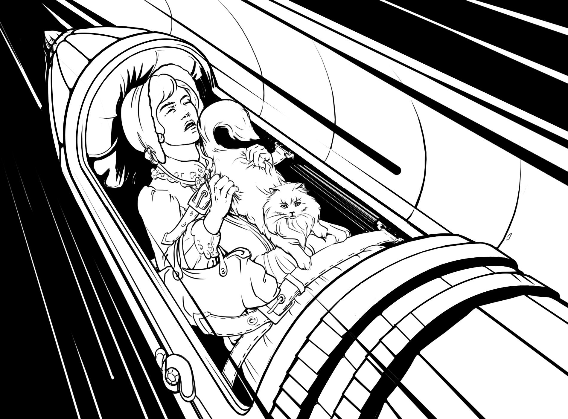 Когда я вылезла из капсулы, мне пришлось переколоть шляпную булавку и оправить пальто. Затем я подобрала с пола упавшую кошелку и предложила шефу запрыгивать.
