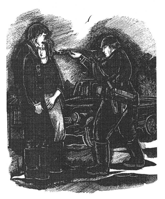 Один из военных, судя по погонам и пистолету в кобуре, офицер побрёл вперёд, не выпуская изо рта сигареты. У него был большой рот, глаза-щёлочки и волосы, песочного цвета, явно нуждающиеся в стрижке. На форменной одежде красовалась пара неразборчивых медалек. Он остановился возле машины, оглядел Мэллори и ничего не выражающим взглядом уставился на Салли.
