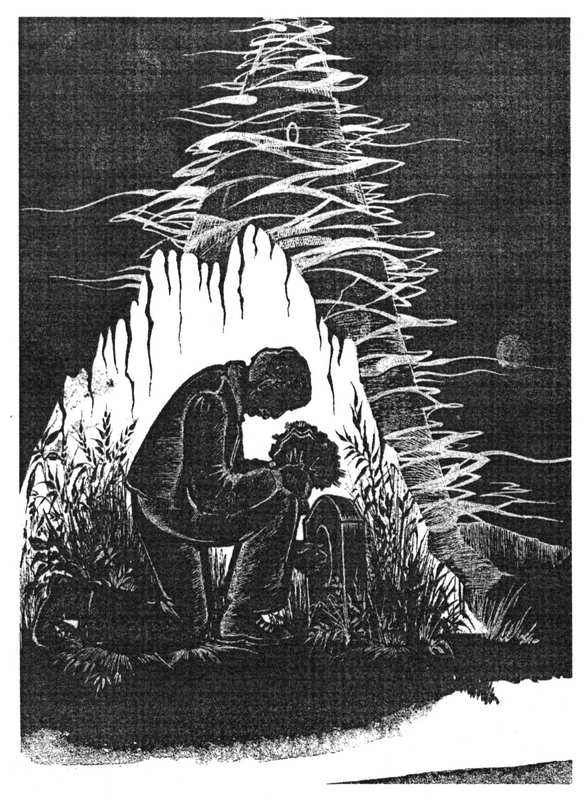 Откинувшись в большом деревянном кресле, которое он притащил с кухни, Мэллори слушал шепчущий голос, позволяя своим мыслям бродить далеко-далеко… Была ночь, свет был приглушен в зале за стенами большой спальни, где он лежал в постели, один из четырёх в комнате с высокими потолками. Остальные уже уснули, он слышал в темноте их мягкое дыхание. Но он не спал, разглядывая луну сквозь ветви облетевших деревьев за занавешенным окном. Был холодный зимний день, дневную игру в мяч отменили, вместо этого под присмотром воспитателя в библиотеке провели музыкальное занятие. А потом, за ужином, мисс Уинчер прочитала очередную главу из «Дэвида Копперфильда». Мысли о Дэвиде Копперфильде сделали его несчастным. Гораздо приятнее было думать о дяде Эле. Возможно, дядя Эл придёт снова, этой ночью, даже… – Да, – прошептал тихий голос. – Этой ночью… Дядя Эл навестит тебя… Дядя Эл стоял у кровати, большой, высокий, с длинными волосами, как у Эдгара Аллана По, но его лицо было непохоже на лицо По. Челюсть у него была квадратная, улыбка весёлая, глаза – тёмные и блестящие. Под сюртуком виднелись оборки и на манжетах тоже. Толстая золотая цепочка от часов пересекала изукрашенный цветами жилет дяди Эла, на пальцах блестели кольца. – А, Джефф, дружок, – сказал он глубоким рокочущим голосом, столь мягким, что почти не нарушал тишину, но мог быть услышан на любом расстоянии. – Куда мы отправимся сегодня? – В дом, дядя Эл! – Ты прав! Пойдём-ка… Он плыл рядом с дядей Элом. Дядя Эл беспечно шёл вперёд, куря большую чёрную сигару, словно под ногами его была твёрдая почва, а не воздух. Небо было залито лунным светом и далеко внизу земля напоминала поле для настольной игры, тянущееся до самого горизонта, уставленное игрушечными домиками, дорогами и лесами. Затем они поднялись выше, проплывая по огромным, освещённым луной, каньонам из облаков, паря словно птицы, меняя курс всего лишь наклоном руки. Дом стоял на вершине холма, озарённый светом. На изогнутой дорожке сгрудились экипажи, блестящие лошади гарцевали, всхрапывая, из их ноздрей шёл пар. Мужчины в высоких шляпах и пелеринах, и женщины в ярких платьях пересекли широкую веранду и вошли внутрь через распахнутую дверь под сверкающим полукруглым окном. Они прошли сквозь стену, не прибегая к помощи двери – трюк, про который он всегда собирался спросить, но так и не спросил. Затем они оказались в комнате, где на платформе покоилась волшебная машина, состоящая из огней, граней и сверкающих переплетений. – Здесь она ждёт, – сказал дядя Эл. – Ждёт напрасно, надеемся мы. И всё-таки – однажды они могут прийти. И они – злодеи, Джефф-дружок. Мы не должны позволить им провернуть свои штуки, понимаешь? Только ты и я знаем про них, ты, я и ещё один человек. Это наш секрет, такой, о котором нельзя рассказывать никогда. Итак, те негодяи, за которыми мы следим – всегда посылают уведомление. Эту вещь ни ты, ни я увидеть не можем, дружок. А машина может. И когда она увидит, если увидит, она скажет нам! И тогда – мы знаем, что делать, да, Джефф? – Я не уверен, дядя Эл. Эта часть – трудная. Она не такая весёлая, как всё остальное. У меня голова болит… – Неужели, у такого прекрасного парня как ты, Джефф? Парня, который может летать, ходить сквозь стены и разделять секрет машины? Чепуха! Ты можешь сделать это, мальчик! Пытайся! Вместе со мной: сначала мы рисуе