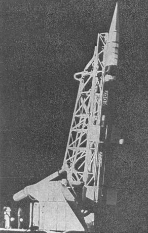 Геофизическая французская ракета «Эридан» с установкой «Аракс» на стартовом столе.