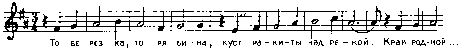 Но, кроме нотных знаков, вы можете заметить здесь и другие обозначения. Рядом со скрипичным ключом стоит знак # и цифры 24. В нотных записях других песен встречаются иные знаки и цифры. Например, песня «Как пойду я на быструю речку» записывается так:
