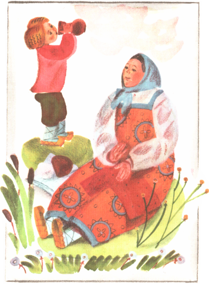 Челнок и поплыл далеко-далеко. Терёшечка стал рыбку ловить, а мать ему молочко и творожок стала носить.