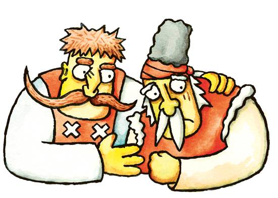 Я повернуся до тями й відчув, що лежу обличчям у піску, а ногами — у воді. Розплющивши очі, побачив, що вже настала ніч і що лежу я на березі. Буря минула, над головою сяяли зорі — та такі яскраві, яких я не бачив жодного разу в житті. Але тоді мені було не до небесної краси. Я звівся на ноги і так швидко, як тільки зміг, побіг берегом, шукаючи Василя. Дарма: всюди навколо були самі скелі та пісок. Швидко скінчилися сили, і я знов упав, заливаючись сльозами, бо вирішив, що врятувався лише я один. Удруге оговтався вже наступного дня. Відразу захотів пити — так, як ніколи в житті не хотів. Я знав, що морської води куштувати не слід, адже тоді швидко зіскочиш із глузду, проте все одно підійшов до берега спробувати: а раптом нас зненацька тією бурею повернуло до Дніпра, а він місцями широкий, наче море. Ковтнув — ні, солона. Тьху ти! І тоді я почув, як ліворуч, за скелями, наче хтось кричить. За прибоєм і вітром могло й почутися, та я побіг туди так прудко, як лише міг. Домчав до скелі, вскочив у море і пошльопав ним, оминаючи високе каміння. Й уже з моря побачив, що відбувалося далі на березі. Там підіймався з піску Гупало Василь, а навколо нього стояли татюрки, котрі, вочевидь, також урятувались. Але в той момент мені було не до них. Я так зрадів, що Гупало теж живий, що закричав і побіг до нього. І — між нами — зізнаюся, що біг я тоді, плачучи від щастя, попри те, що на мене чекала неминуча бійка. Проте разом із другом битися можна. Можна програти, можна навіть загинути, але головне — не зрадити ні себе, ні його. Татюрків було п’ятеро. Вони зі своїми кривими шаблюками стояли навколо Василя. Почувши мій крик, усі обернулись, і то був ідеальний момент, аби Василеві збільшитись і побити їх, поки вони відволіклися! Та він чомусь просто стояв. Я проскочив поміж найближчиими ворогами й підбіг до нього. Коротко кивнув йому і став поруч, готуючись битися, хоч і не мав я тоді нічого в руках. — От шо, — сказав Василь і сплюнув піском, — битимемося далі? І тоді один із ненаших вийшов трохи вперед і показав рукою на себе та на своїх: — Ми — ні. Він викинув у пісок шаблю, почекав, поки решта татюрків зробить те саме, тоді, обережно підійшовши, зняв залізну рукавицю — показав, що рука його порожня, і простягнув правицю Василеві. Так і привіталися.* * *