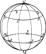 Рис. 19. Построение вершин звездчатого додекаэдра на поверхности шара