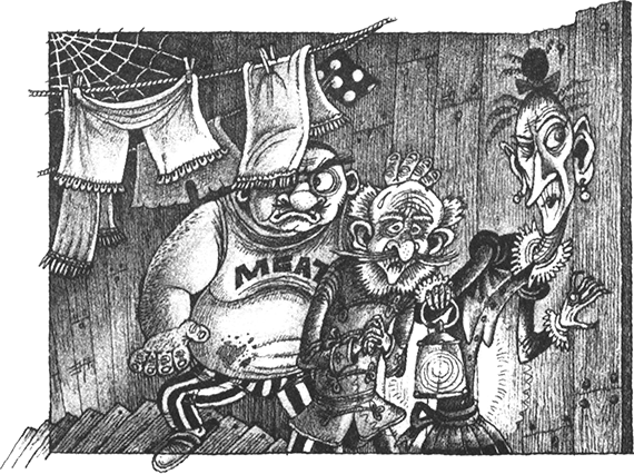 На чердак поднимались долго и мучительно. Лестница была старая и под тяжелой стопой мясника трещала на весь дом…