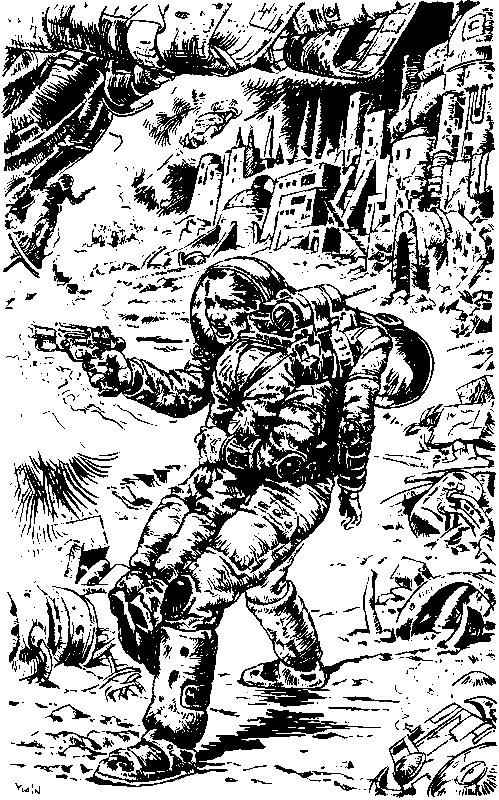 Когда физик уехал, Ян направился к месту раскопок. Он обследовал, без особой надежды, один из разрушенных домов. Руины ушли глубоко под землю, дерево сгнило, железо обратилось в ржавчину. Однако когда уже начинало темнеть, он наткнулся на металлическую дверь. Вскрыв ее газовым резаком, он оказался в убежище, точно таком же, как первое. Книг в этот раз было мало, но на самом видном месте, на столе из нержавеющей стали лежал том, раскрытый на странице с картинкой, где человек в шлеме, сжимая в руке диковинный пистолет, отбивался от полчищ наседавших на него чудовищ. Другие тома валялись в беспорядке на полу. На первой же обложке Ян смог разобрать: «As...Science...on». Несомненно, это был формат и эмблема одной из самых известных серийных хроник времен Первой империи, которую редактировал историк Кэмпбелл. Может, хотя и маловероятно, в этой груде найдется несколько полных и, может, хоть на сей раз летописец не умолчал о технических деталях.