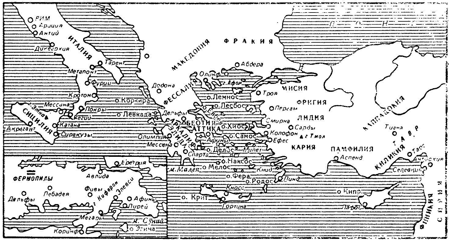 17. Так проводили они время на корабле и, наконец, прибыли в Пирей, как раз в пору мистерий, когда справляют афиняне многолюднейший из эллинских праздников. Аполлоний, сойдя с корабля, поспешил в город, и тут навстречу ему попалась толпа любомудров, направлявшихся в Фалер: кое-кто из них загорал телешом, ибо осень в Афинах солнечная, кое-кто усердствовал над книгами, кое-кто упражнял гортань, кое-кто спорил, но мимо Аполлония ни один не прошел — все тут же догадались, что это он и есть, окружили его и радостно приветствовали. Сразу десяток юношей бросились к нему, восклицая: «Афина — свидетельница! — и с этими словами простерли они руки к Акрополю. — А мы-то уж отправились в Пирей, чтобы плыть к тебе в Ионию!» И Аполлоний обласкал их, сказавши, что любомудрствующим рад.и как афинян наставлял (18—19), чары демонские исцелял (20), нравы исправлял и благочестие умножал (21—22)
