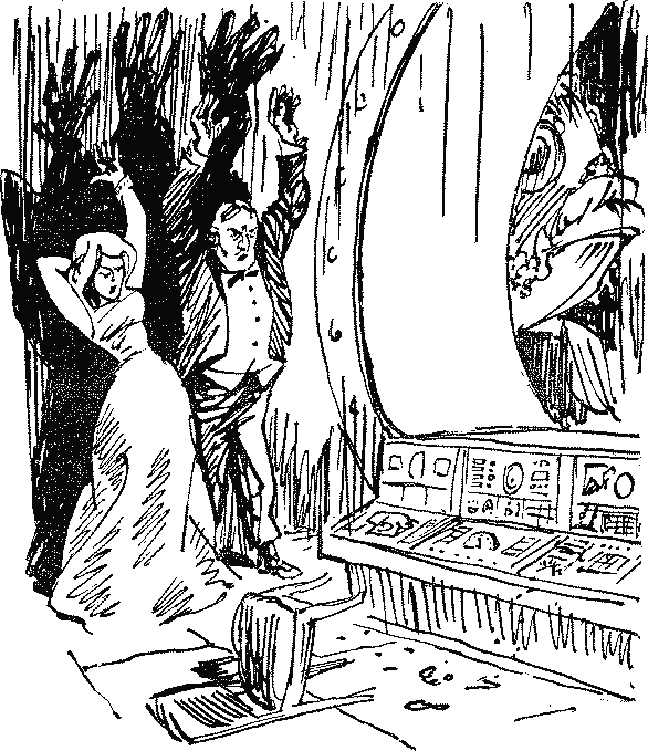 В одну из этих бухт заворачивал теперь самым малым «Алеша Попович». Вдоль всей набережной под пальмами, под сводами гигантских дубов и пиний стояли, глядя на приближающийся советский корабль, толпы эмпирейцев. Толпы людей, загорелых и ярко одетых, усеяли крепостные стены и бастионы. Но — и это было странно, крайне странно! — толпы молчали. В полной тишине дизель-электроход огибал узкий гранитный волнолом. Слышен был только слабый шум турбин. Вода была прозрачна до самого дна, как и во времена адмирала Стратофонтова. Переливались камни на дне, ветвились кораллы, колыхались растения. — В чем дело? Почему они молчат? — Рикошетников поднес к глазам бинокль. — Все молчат. Некоторые улыбаются… Странные улыбки… «Алеша Попович» уже обогнул волнолом, когда из-за круглого бастиона с диким ревом вырвался глиссер. С чудовищной скоростью он несся прямо на судно, подобно ослепшему от ярости носорогу. Ни о каком маневре нельзя было уже и думать. Глиссер целился прямо в середину правого борта, словно хотел протаранить «Попович». В глиссере сидело несколько обнаженных по пояс мускулистых парней, а на самом кончике его носастоял, расставив колоннообразные ноги, гигант в плавках, похожих на кусок леопардовой шкуры. Пятьдесят метров, тридцать, двадцать…