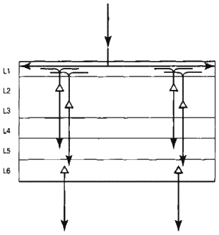 Рис. 6.6. Слои и колонки в зоне коры головного мозга