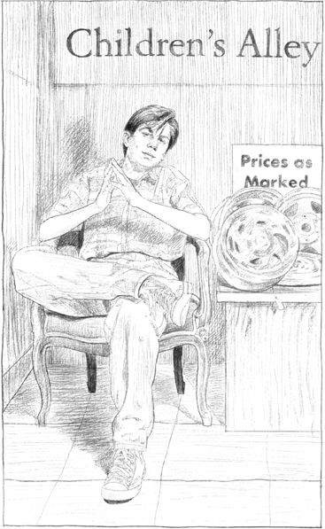 Днём в воскресенье Энциклопедия с Салли отправились на выставку старьёвщиков в Конвеншенс-центре. Не успели они пройти через дверь, как к ним подлетела, будто на крыльях, Фэй Ксаникис. – Энциклопедия, Салли!– воскликнула она. – Как здорово, что вы здесь! Я нашла своё кресло. Его украл Таггарт Смит! – Давай по порядку, ладно? – попросил Энциклопедия. Фэй сглотнула и затараторила. В прошлом месяце она нашла на свалке по соседству деревянное кресло. С помощью отца она починила его и выставила на парадном крыльце. На следующее утро кресло исчезло. – Я не видела его до сегодняшнего дня, – выпалила Фэй детективам. – А Таггарт пытается продать его! – Ещё посмотрим, – процедила Салли. Энциклопедии не понравился тон Салли – обычно она так говорила в ожидании драки. Но он промолчал. Таггарт был грозой шестого класса. Его одноклассники не могли дождаться того дня, когда он принесёт домой записку от директора, где сообщается о его исключении из школы. – Где кресло? – спросила Салли. – Таггарт сидит на нём, – ответила Фэй. – Следуйте за мной. Она провела детективов мимо столов, заваленных банками из-под пива, старыми ланч-боксами, дверными ручками, одеялами и дорожными картами Трансильвании, – Это шоу для старьёвщиков, – объясняла Фэй, – здесь не увидишь ничего фантастического вроде редких марок или монет. И все продаётся. Можно раздобыть неплохие вещи. Она остановилась в углу под табличкой «ДЕТСКАЯ АЛЛЕЯ». Малыши демонстрировали свои коллекции торговых карточек, игрушек, бутылочных крышек, шариков и комических журналов. Таггарт Смит сидел в деревянном кресле с подлокотниками. Перед ним был стол, заваленный колпаками. У локтя стояла табличка: «ЦЕНЫ УКАЗАНЫ». Салли подошла прямо к нему: – Фэй говорит, что кресло, на котором ты сидишь, принадлежит ей. – Ей? – вскочил, как ужаленный, Таггарт. – Девчонке нужен кислород! – Ты украл его с моего крыльца, – настаивала Фэй. – Если хочешь купить его, я предложу особую сделку, – промурлыкал Таггарт. – Обычная цена составляет двенадцать долларов. Но именно сегодня я согласен на десять. – Я не выкупаю своё кресло, – парировала Фэй, – я нашла его на свалке и починила. – Я сам ремонтировал его, – засмеялся Таггарт. – Я нашёл его на городской свалке. – Да ты и свою голову не найдёшь, – отрезала Салли. – Это моё кресло, и я могу это доказать, – заявила Фэй. – Я вырезала под сиденьем свои инициалы, «Ф. Кс.»