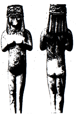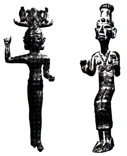 (Слева) Финикийская богиня. Корона и прическа в египетском стиле. Бронза, высота 17,5 см (Справа) Финикийская богиня; около XIV в. до н. э. Бронза, высота 16,5 см