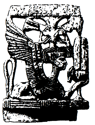Рельеф стелы царя Библа Иехамилька (V–IV в. до и.э.). Изображена Баалат из Библа в стиле египетской Хатхор; царь же, приносящий ей жертву, представлен в персидском одеянии