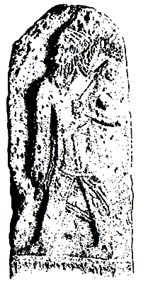 Стоящий на горах Баал угарнтский — бог грозы с палицей и деревом. Небольшая фигурка в молитвенной позе изображает царя Угарита. Рельеф стелы из Угарита; около XIII в. до н. э.