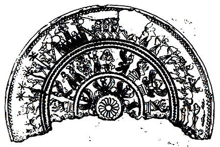 Кипро-финикийская чаша с египетскими, ассирийскими и греческими мотивами. Серебро; диаметр 19 см; XIII в. до н. э.