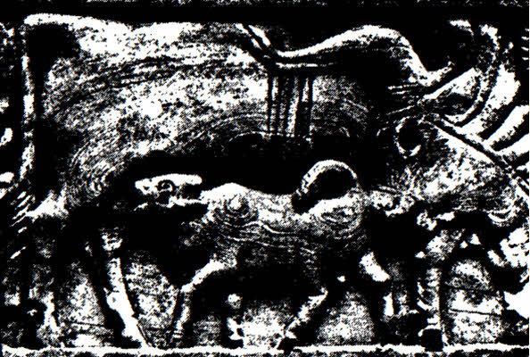 Охота на горилл в Африке. Деталь финикийской серебряной чаши; VII в. до н. э.