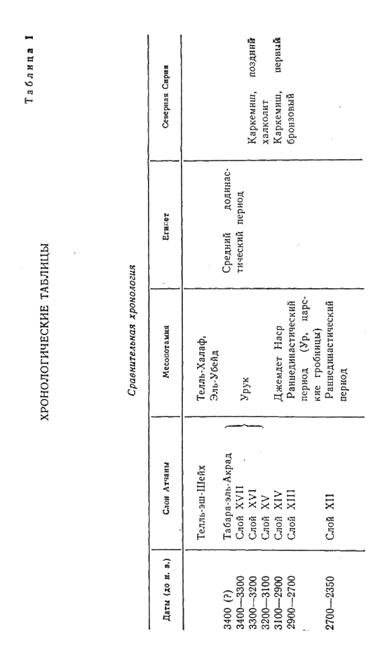 Во время экспедиции 1947 г. один из наших рабочих, курд, который жил в деревне в трех милях западнее Атчаны, пришел ко мне, широко улыбаясь, и сказал, что у него есть нечто такое, за что, как он ожидает, я заплачу ему большой бакшиш. «Это гораздо древнее всего, что нами уже найдено или когда-либо будет найдено в Атчане», — сказал он и извлек из завязанного узлом платка несколько расписных черепков, которые полностью соответствовали его оценке. Он направлялся домой по тропинке среди невысоких холмов и остановился, чтобы подобрать камень на крутой обочине. К своему удивлению, он обнаружил, что это не камень, а кусок раскрашенной керамики. Оглядевшись, он увидел, что вокруг таких кусков достаточно много, стоит только порыться в земле; его брат, который когда-то работал на американскую экспедицию при раскопках Телль-Тайинат, определил, что это самая древняя из найденной керамики, и посоветовал отнести ее мне. Так она попала ко мне, и что же оставалось делать? Естественно, я должен был заплатить, и после этого мы начали раскопки холма Телль-эш-Шейх. Холм лежал в двух милях к западу от Атчаны, на другом берегу р. Оронт, и оказался настолько низким, что был почти незаметен. Когда-то это был достаточно высокий холм, но внизу его склоны на 15 футов ушли под отложения ила, принесенного на равнину после того, как землетрясение перекрыло течение реки, а затем лемех, ветер и дождь так «поработали» над верхним слоем почвы, что оголенный верх холма поднимался теперь над равниной на высоту не более человеческого роста. Но это было перспективное для наших раскопок городище, так как керамические черепки, находимые на поверхности, свидетельствовали о том, что в историческую эпоху место оставалось незаселенным, и поэтому остатки доисторического времени должны были лежать нетронутыми, и их легко можно было обнаружить. Мы начали с закладки траншеи в юго-восточной части холма, свободной, как я надеялся, от жилых построек. Когда имеешь дело с новым материалом, самое лучшее — собрать его как можно больше в короткое время, чтобы освоиться с ним и получить полное представление о всех типах керамики, которые могут встретиться. Так мы и сделали на этом городище. Жилища могли бы дать нам стратиграфию керамических типов, но ведь дома иногда бывают настолько чисто выметены, что в них почти не остается самого материала. В то же время нигде не бывает такого обилия черепков, как на мусорной свалке, и так как в этой местности ветер дует преимущественно с северо-запада, мусор, несомненно, должны были сваливать на юго-восток от домов. Поэтому мы и начали с раскопок мусорной свалки, стараясь датировать черепки и по их положению в слоях, а затем уже обратились к систематическим раскопкам самой деревни, в ходе которых проверяли и уточняли наши предварительные заключения. В холме мы обнаружили 12 отчетливо различимых строительных горизонтов, расположенных один над другим, что говорит о длительном существовании поселения. Дома из сырцового кирпича достаточно долговечны, и даже если считать, что они служили в среднем только по 30 лет (меньше уж никак, не могло быть), то 11 перестроек означают, что Телль-эш-Шейх существовал три с половиной века. Содержимое последовательно сменявших друг друга слоев дало весьма ясную картину развития культуры обитателей поселения за этот период. Хозяева са