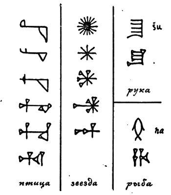 Рис. 8. Развитие шумерской письменности от древнейших пиктографических знаков к клинописи