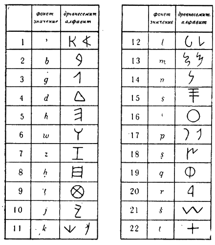 Иные не без благоговения станут рассматривать древнесемитские письменные знаки, которые являются прародителями и наших алфавитных букв. Однако при более тщательном наблюдении не остаются в тени и слабые стороны этого почтенного буквенного алфавита: ведь юн даже не имеет знаков, выражающих гласные звуки! Для древних семитов (как и для древних египтян) это, правда, не было заметным недостатком, ибо строй их языков отводит гласным в сравнении с согласными роль намного менее значительную, чем та> которую они играют у нас. Поэтому именно индоевропейцам, выпало на долю увенчать буквенное письмо большей полнотой и однозначностью. Первую попытку поисков в этом направлении — прекрасный образец новаторства в истории письменности — предприняли древние персы, чья клинопись уже знает неполное написание гласных (что, между прочим, довольно сильно затруднило ее дешифровку!). Однако слава полной и окончательной вокализации семитского алфавита принадлежит грекам. Из определенных знаков семитского письма, для которых не было соответствующих согласных звуков в греческом языке, они сделали необходимые их языку знаки для обозначения гласных звуков. Из таблицы (рисунок 12) видно, как они при этом поступили.