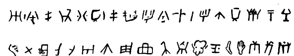 Рис. 10. Слоговая японская письменность катакана в ее развитии из обычного китайского письма