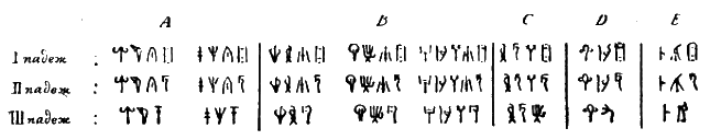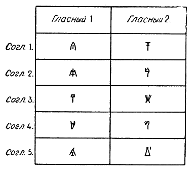 = r (из tangri). Но, стало быть, слово читается t-ü-r? А ведь это не могло значить ничего иного, кроме «тюрк»! Тем самым был получен второй знак для к