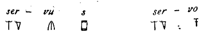 означает, согласно равенствам Мериджи, ЗЕРНО — ОФИЦЕР — РОМБ — СТОЛ, то есть, по его объяснению, «зерно [для] столовой офицерского состава (?)».