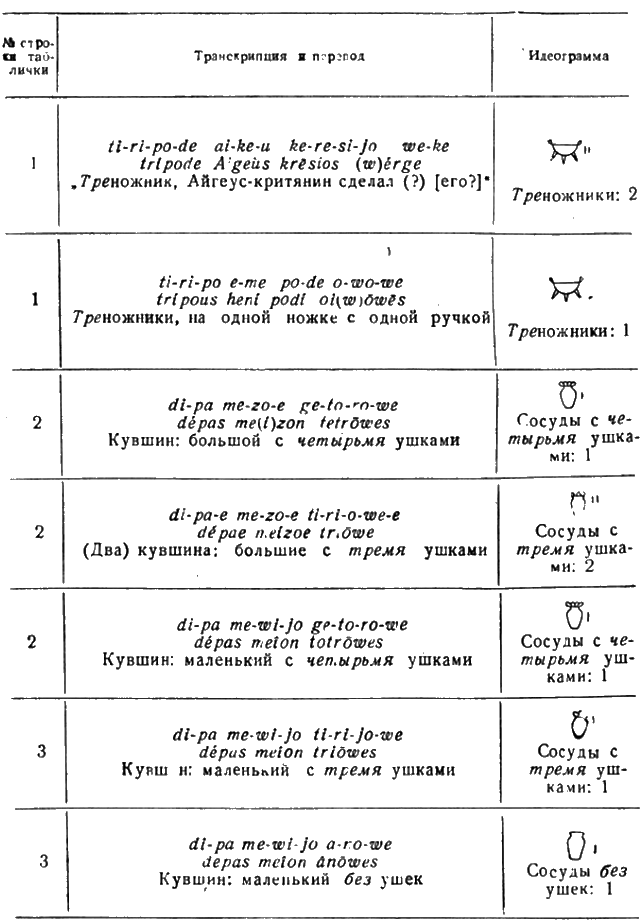 Однако следует предупредить читателя, что наше изложение слишком упрощенно. Всякая человеческая речь, язык, как и письменность, являются чем-то живым и беспрестанно изменяющимся, поэтому никогда не было и чистого слово-звукового письма (насколько легче давались бы дешифровки и сколько попыток увенчалось бы успехом, если бы такое письмо существовало!); вместо этого повсюду, где писали «словным» письмом, можно найти наряду со слово-рисуночным письмом и слово-звуковое письмо, да сверх того еще и черты чистого рисуночного и чистого звукового письма. В результате получается восхитительно «нелогичный», но захватывающий и постоянно меняющийся в своем составе хаос и в то же время стройное законченное целое. Вот каковы были те многие лабиринты, по которым двигались великие дешифровщики; то;в одиночку, то в сотрудничестве друг с другом, то наследуя достижения предшественников, шли они по этим лабиринтам, чтобы выйти из них с победой.