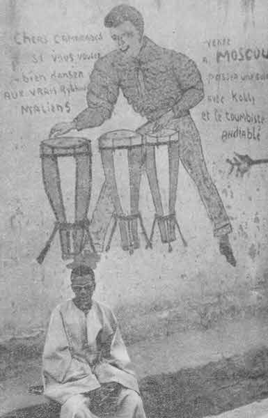 Женщины, привязав за спину грудных детей, с грузом на голове, очень прямые, проходят мимо — когда-то они смогут снять с себя груз? Однако они всегда веселы. Несколько велосипедистов занимают всю ширину улицы. Затем проходит старик, держа прямо над головой черный дождевой зонтик, защищаясь им от солнца. Другой старец проезжает на мотороллере; ветер относит в сторону его бубу, захлестывая им колесо. Черные блестящие машины дипломатов, медленно скользя, пробираются вдоль улицы. Шатаются без цели, одетые по парижской моде вчерашнего дня, вооруженные транзисторным приемником юные франты. Вот они скрылись за углом. Белый патер с крестом на цепи поверх белой сутаны и тропическим шлемом на покрасневшей от жары голове приближается к нашему кафе, увлеченно болтая с черной дамой. Двое юношей в спортивных рубашках, с газетами в руках, беспечно ведут громкий разговор на французском языке. На другой стороне улицы появляется целая дюжина школьников. Портфели или перевязанные бечевкой книги они ловко несут на голове; занятия в школе кончились, и они спешат домой. Перед французской мясной лавкой две девушки, стоя бок о бок, предлагают каждому проходящему европейцу свои последние помидоры. Утром овощи уже будут вялыми и утратят всякую ценность. «Все за пятьдесят франков, мадам, месье, все за пятьдесят франков». Они даже не обращаются к африканцам: ведь те никогда не станут платить такой цены. И продавцы газет. Они самые тихие из всех торговцев, никогда не пристают к покупателю: ведь их товар и так идет хорошо. «Эссор» («Подъем»), единственная ежедневная газета страны на французском языке, освещает насущные проблемы Африканского континента, рассказывает о борьбе за независимость во всем мире. «Революция на Кубе и ее влияние на Южную Америку» — гласит выразительный аншлаг. Рядом напечатана карга. На третьей странице — длинная, набранная жирным шрифтом статья о значении сельскохозяйственных товариществ. Здесь же — малийско-советское коммюнике о техническом, экономическом и культурном сотрудничестве. Проблемы, поднимаемые газетой, очень важны. Они могли бы заполнить не одну страницу, но газета мала. Дважды встречается сообщение об Алжире: «О борьбе соседнего народа» и «1962 — год алжирской независимости!» Фотографии, лозунги: Эжени Коттон прибыла в Бамако. Она будет присутствовать на конференции интернациональных женских организаций. Президент Модибо Кейта посещает школы, детские сады, социальные учреждения. Президент изображен на трех больших фото, рядом с ним детские личики — прилежные, испуганные, счастливые — и учительница, явно польщенная посещением высокого гостя. Но все эти известия, передовицы, репортажи, публикуемые в газете, доступны лишь небольшому проценту малийцев — тем, кто уже научился читать, кто владеет французским языком. Поэтому, несмотря на недостаток места, в газете много иллюстраций: ведь фотографию легче понять. Растет, хотя и медленно, число школ и вечерних курсов, увеличивается и количество грамотных, правда, с моей, европейской точки зрения, также очень медленно. Но кто умеет читать, читает «Эссор», некоторые пока еще с трудом, по слогам. Однажды, сидя в бистро и просматривая газету, я увидел там рядом со статьей о народной медицине в Бразилии и отчетом о последних успехах добровольцев на трудовом фронте поэму, занимаю