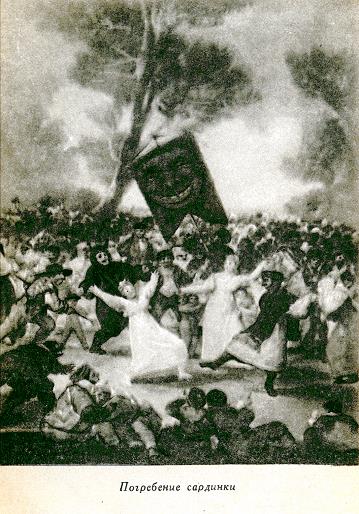 Гойе не терпелось поделиться пережитым в церкви Сан-Доминго. Агустин не спрашивал его, но явно надеялся, что он сам расскажет. А Франсиско молчал. Он не находил нужных слов. Слишком сложны были его переживания. Он увидел больше, чем страдания Олавиде и грубый фанатизм его судей. Он увидел демонов, которые летали, ползали, гнездились вокруг судей, грешников и зрителей, он увидел тех злых духов, что всегда вьются вокруг человека, увидел их радостные рожи. И даже он, при всей жалости, ненависти и гадливости, какую вызывало в нем жуткое и жестокое уродство этого зрелища, даже он радовался непонятной трезвеннику Агустину радостью демонов. Мало того, в нем проснулся тот по-детски жадный, смешанный со страхом восторг, какой он испытал когда-то мальчиком при виде осужденных и горящих на костре еретиков. Нет, эту путаницу, эту мешанину старых и новых образов и ощущений нельзя передать словами. Это можно только написать. И он принялся писать это. Отбросил все прочее, чтобы писать только это. Уклонялся от сеансов, на которые милостиво дал согласие дон Мануэль. Отказывал себе во встречах с Каэтаной. Никого не впускал в мастерскую. Даже Агустина просил не смотреть на его новые картины; ему он первому покажет их, когда кончит. Для работы он надевал свое самое дорогое платье, иногда даже наряжался в костюм махо, хотя в нем было и неудобно. Писал он быстро, но напряженно. Писал даже по ночам: при этом надевал низкую цилиндрической формы шляпу с жестяным щитком, к которому приделал свечи, чтобы всегда иметь правильное освещение. Он чувствовал, что за короткий срок после окончания «Праздника святого Исидро» глаз у него стал острее, а палитра — богаче. И был радостно возбужден. Со скромностью победителя он сообщил закадычному другу Мартину, что пишет несколько картинок только для собственного удовольствия и потому следует велениям своего сердца, своим впечатлениям и настроениям куда больше, чем в заказных картинах: дает полный простор своей фантазии, изображая мир таким, каким его видит. «Получается здорово, — писал он. — Я непременно выставлю эти картины сперва у себя, для друзей, а потом в Академии. Мне хотелось бы только, чтобы ты, душа моя Мартин, поскорее приехал посмотреть их». Он перечеркнул письмо крестом, чтобы злые духи не подгадили ему напоследок в наказание за его дерзкую самоуверенность. Настал наконец день, когда он с какой-то злобной радостью заявил Агустину: — Готово! Можешь посмотреть, можешь даже высказать свое мнение, если хочешь. И Агустин увидел картины. Одна изображала убогий деревенский бой быков. Тут была и арена, и участники, и лошади, и зрители, а на заднем плане — несколько невзрачных строений. Сам бык, затравленный, залитый кровью, был совсем ледащим, трусливым быком; он жался к загородке, пускал мочу и не хотел больше бороться, он хотел только умереть. Зрители же были возмущены трусостью быка, не желавшего доставить им удовольствие, на которое они имели право, не желавшего возвращаться на арену и на свет, а самым наглым образом укрывавшегося в тени, чтобы там околеть. Бык занимал не много места — не его хотел изобразить Франсиско, а его участь; для этого же не меньше, чем бык, нужны были тореадоры, зрители и лошади. Картина была многофигурная, но ничего в ней не было лишнего, несущественного. Вторая картина представляла собой внутренн