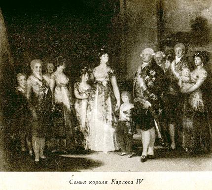 В Аранхуэсе Гойю сейчас же провели к королю Карлосу. Государь играл с двумя младшими детьми — инфантом Франсиско де Паула и инфантой Марией-Исабель — и развлекался корабликом, который пускал по каналу Ла Риа. Игрушка явно забавляла самого короля больше, чем детей. — Смотрите-ка, дон Франсиско, — крикнул он подошедшему художнику, — ведь это же точная копия с моего фрегата «Сантисима Тринидад»! Сам фрегат сейчас, по всей вероятности, крейсирует в Южно-Китайском море, где-нибудь около моих Филиппинских островов. Конечно, уверенности, как сейчас обстоят дела, у меня нет; англичане, верно, вступили в союз с самим дьяволом. Зато здесь с нашим гордым фрегатом все обошлось благополучно. Мы провели его вокруг всего острова, через Тахо и канал. Хотите играть с нами? — предложил он Гойе. Затем, после того как были наконец отправлены дети, он решил погулять со своим живописцем по садам. Впереди, тяжело ступая, шел дородный король, а на полшага за ним — Франсиско. Аллеи терялись вдали, ветви высоких деревьев переплелись и образовали широкий зеленый свод, лучи солнца кое-где проникали сквозь листву. — Вот, послушайте, мой милый, какие у меня на ваш счет планы! — начал король. — Вышло так, что в нынешнем чудесном мае все мои близкие собрались сюда в Аранхуэс. Вот я и подумал: вы должны изобразить нас, дон Франсиско, всех вместе на одном портрете. Гойя в этот день слышал отлично, а у его величества был громкий голос. Все же Гойя подумал, что ослышался. Ведь слова короля обещали невероятное, сказочное счастье, и он боялся, как бы оно не растаяло в воздухе, если он поспешит его схватить. Обычно короли не любят позировать художникам для семейных портретов. Особам царского рода не свойственно терпение, и когда у одного есть досуг, другой занят. Только тем мастерам, которых особенно ценят, поручаются семейные портреты. Со времен Мигеля Ван-Лоо такие портреты не поручались никому. — Я представляю себе это так, — продолжал дон Карлос. — Прелестная и в то же время величественная домашняя идиллия, что-нибудь вроде того портрета Филиппа IV, где маленькая инфанта тянется за стаканом воды, а один из мальчуганов дает пинка собаке. Или как на портрете моего деда Филиппа V, где все так уютно сидят вместе. Скажем, я бы мог сравнивать свои часы, или: я играю на скрипке, королева читает, младшие дети гоняются друг за другом. Каждый за каким-нибудь приятным занятием — и все же портрет в целом парадный. Вы поняли меня, дон Франсиско? Дон Франсиско понял. Но он представлял себе дело иначе. Жанровая картинка, нет, ни за что! Однако он был осторожен, он не хотел упускать такой удачный случай. Он весьма признателен королю за доверие и за исключительную милость, почтительно ответил Гойя, и просит два-три дня, чтоб поразмыслить, после чего позволит себе изложить свои соображения. — Согласен, мой милый, — ответил Карлос. — Я и вообще-то не люблю торопиться, а уж в Аранхуэсе особенно. Если что-нибудь придумаете, известите донью Марию и меня. В этот и в следующий день всегда общительный Гойя избегал общества. Погруженный в думы, почти обезумев от счастья, не слыша или не желая слышать окликов, расхаживал он по светлому, празднично-веселому аранхуэсскому замку, бродил по чудесным садам, под зелеными сводами калье де Альгамбра и калье де лос Эмбахадорес, среди мостов и мостиков, среди гротов и фонт