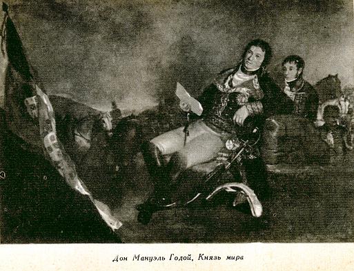 Гойя писал в Аранхуэсе портрет дона Мануэля. Несмотря на громкие восторги, многие уже понимали, что Бадахосский мир гроша ломаного не стоит, и Мануэлю было особенно важно привлечь на свою сторону Франсиско, в котором он видел родственную душу. Он осыпал художника мелкими, но изысканными знаками внимания: делил с ним трапезы, ездил на прогулки. Часто он объяснялся знаками, но еще чаще просто болтал, да так быстро и неразборчиво, что Гойя почти ничего не понимал. Иногда Франсиско думал, что Мануэлю и не хочется быть понятым. У него явно была потребность выговориться, но он считал благоразумным удовлетворять эту потребность перед слушателем с пониженной способностью восприятия, потому что в его разговорах было немало предосудительного. Он произносил желчные и заносчивые речи против первого консула и не жалел язвительных слов по адресу Марии-Луизы и «нашего августейшего монарха». Дон Мануэль просил Гойю запечатлеть его в самом помпезном виде, при всех регалиях генералиссимуса. Ему представляется, заявил он, нечто вроде перехода генерала Бонапарта через Альпы в изображении Давида. Повинуясь желанию дона Мануэля, Гойя написал его в блестящем мундире на поле битвы: он отдыхает после победы на дерновой скамье с депешей в руках. Дерновую скамью на сеансах заменяла удобная софа. Инфант болтал, развалясь на ней. Гойя не ощущал теперь ни капли почтения к своему могущественному покровителю; он видел, что не только лицо, но и сердце у Него заплыло жиром. Франсиско вспоминал, с каким жестоким хладнокровием дон Мануэль исковеркал жизнь инфанты доньи Тересы, вспоминал, как подло он отомстил своему противнику Уркихо за то, что тот показал себя более способным государственным деятелем. Ведь бывшего первого министра держали теперь впроголодь в крепости Памплона, в сыром, темном каземате, отказывая в бумаге и чернилах. Перебирая все это в памяти, Гойя хотя и запечатлел великолепие генералиссимуса, но не утаил и его лени, его заплывшей жиром брюзгливой пресыщенности и надменности.